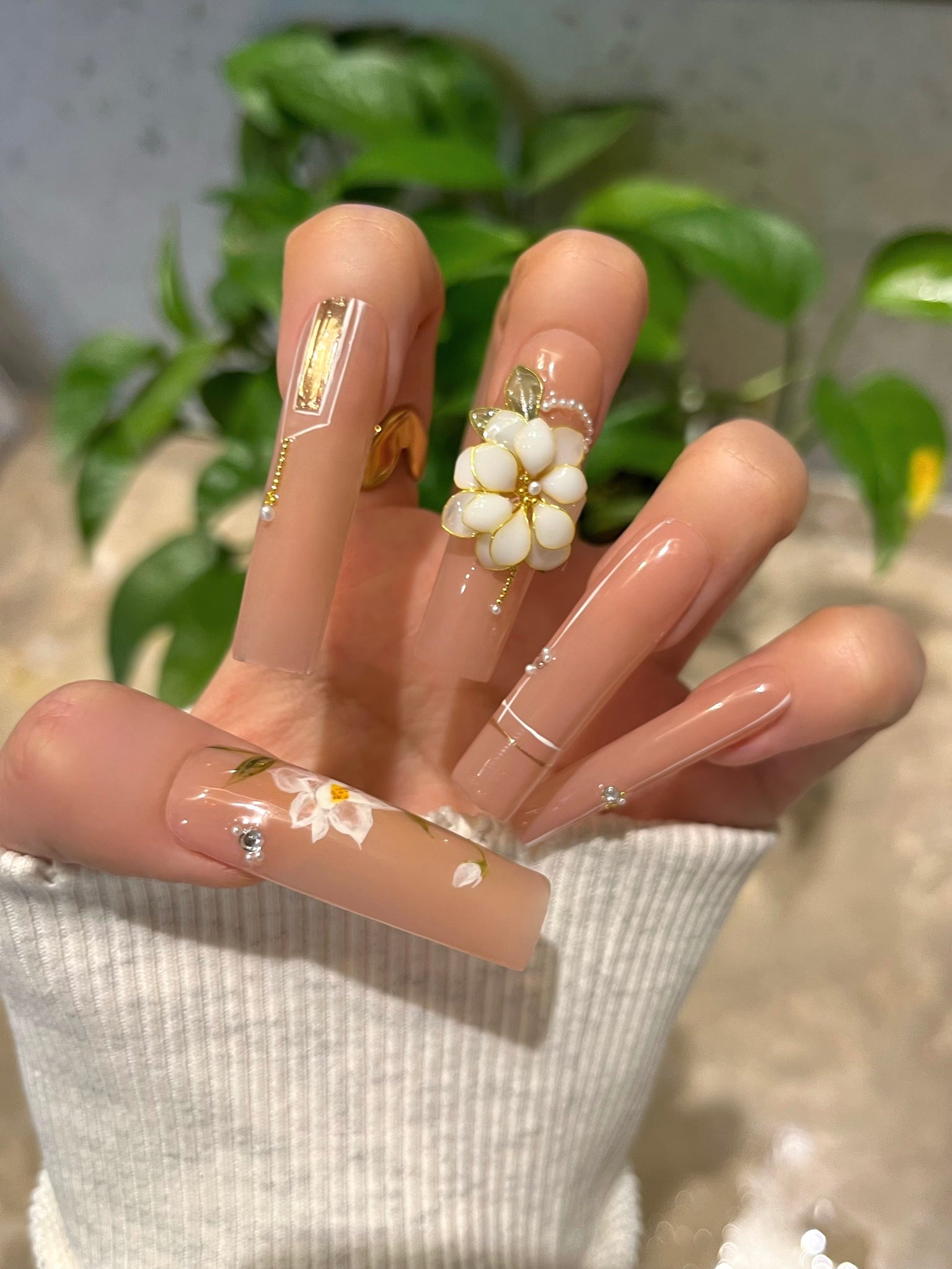 3.Handmade Fake Nails: After trimming and cleaning your real nails, choose a high-quality fake nail of the right size, attach it to your nails, and press for 10 seconds. Now you have a beautiful nail design.